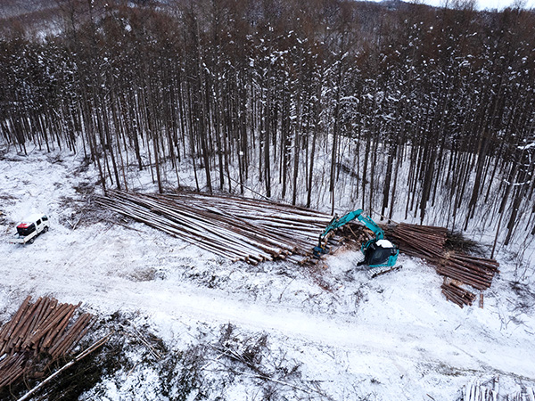 主に森林からの木材生産を専門とし、伐採から街づくりとなる土木工事、林業で発生した未利用材や端材を有効活用した薪の販売など、幅広く手掛けています。